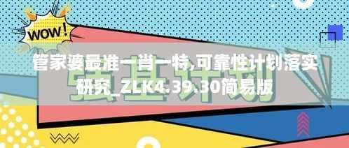 在现代经济发展中,企业在生产及服务过程中对可靠性的要求日益提高,尤其是在数据分析与决策支持系统中,如何确保各类数据的准确性和可靠性成为了一个亟需解决的问题。为此,本文将围绕“管家婆最准一肖一特,可靠性计划落实研究 ZLK4.39.30简易版”的主题,深入探讨如何有效落实可靠性计划,以提高企业管理水平与决策效率。