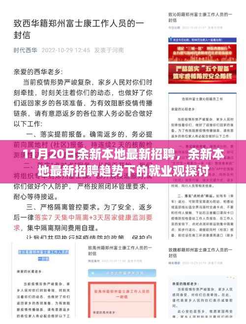 随着时代的变迁与科技的飞速发展,招聘市场也在不断地更新迭代,余新地区发布的最新招聘动态引起了广泛关注,在这样的背景下,如何看待新的就业趋势,如何把握就业机会,成为了公众热议的话题,本文将围绕“11月20日余新本地最新招聘”这一主题,探讨正反双方的观点,并提出个人的看法。