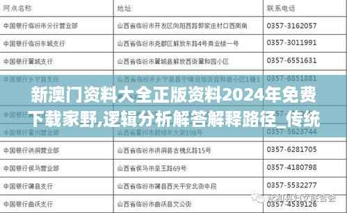 在信息高速发展的今天,获取准确和可靠的资料成为了各行各业的重要需求。特别是在澳门这个特殊的经济和文化区域,提供高效、全面的信息资源已经成为推动社会发展的重要因素。本文旨在探讨和分析2024年新澳门资料大全的正版权威资料及其对用户的意义,并提供免费下载的具体路径。同时,我们会利用逻辑分析的方法,对资料的有效性和实用性进行解析。