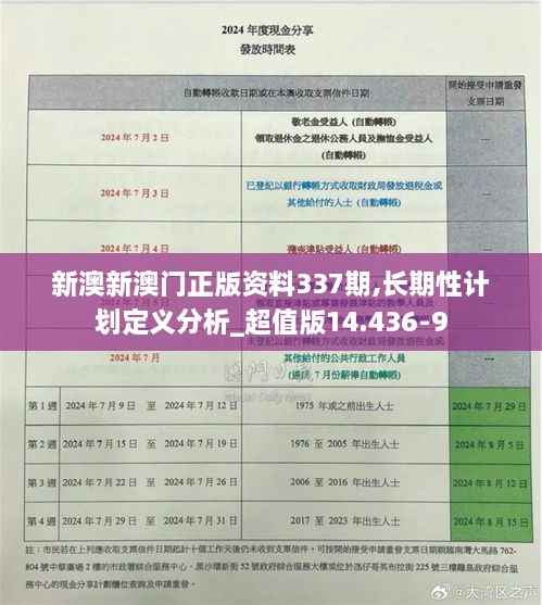 新澳新澳门正版资料第337期,尤其是超值版14.436-9,为我们了解和分析这一地区提供了宝贵的资源,通过深入研究这些资料,我们不仅可以更好地把握新澳新澳门的长期性计划和发展方向,还可以发现新的机遇和挑战,展望未来,新澳新澳门将继续以其独特的魅力和活力吸引着全球的目光,而正版资料将继续在推动这一地区发展中扮演重要角色。